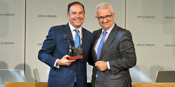 De manos del Vicepresidente y Consejero de la Presidencia y Administración Local de la Junta de Andalucía., Manuel Jiménez Barrios, el programa “Los Caminos del Cante” recibió el trofeo que acredita nuestro Premio de Comunicación Audiovisual Local 2015 en el apartado de radio. El acto institucional, con presencia de la Consejera de Cultura, Rosa Aguilar Rivero, tuvo lugar en el Palacio de San Telmo de Sevilla, sede de la Presidencia del organismo autónómico el jueves 12 de noviembre del pasado año.