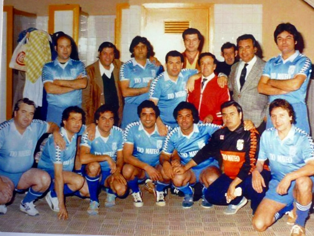 Aunque aparecen algunos integrantes de aquella formación de lunares nada tiene que ver con él, en principio. Se trata de un partido benéfico que cada Navidad – Reyes Magos creo que organizaba Radio Popular de Jerez reuniendo las selecciones de artistas y toreros en el pabellón polideportivo Ruiz Mateos.