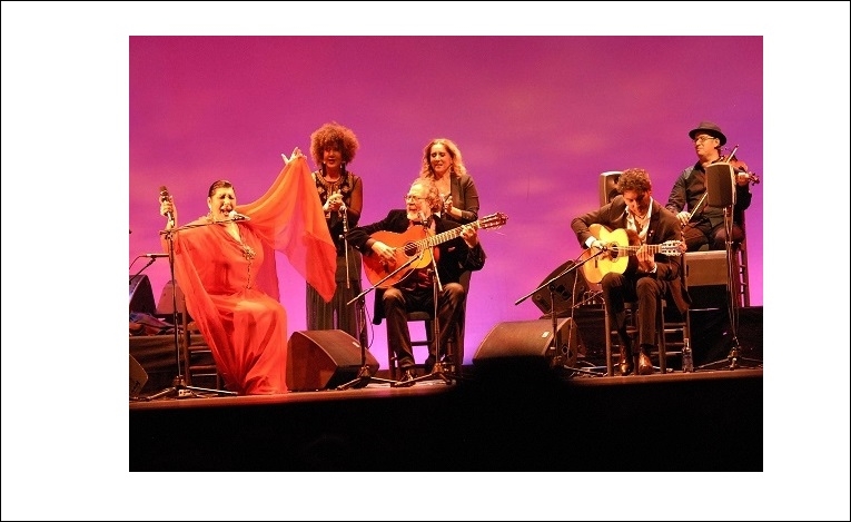 CELEBRANDO SUS 50 AÑOS DE VIDA ARTÍSTICA EN FAMILIA.- Primera entrega del concierto en directo del jerezano Diego Carrasco en sus 50 años de artista en familia en el Teatro Villamarta de Jerez. La actuación tuvo lugar el pasado 11 de noviembre de 2017. Diego Carrasco no admite etiquetas; su arte comienza y termina con él gracias a su sello personal y su magia en el compás. (Foto: Remedios Amaya canta ante Diego Carrasco y Currito de Juañares por gentileza de la página hermana lebrijaflamenca.com)