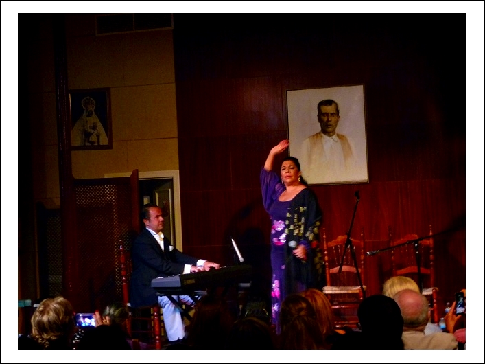 Tomasa estuvo acompañada por la excepcional guitarra de Manuel Valencia y las palmas de Chicharito, Macano y Cantarote. Compartimos la crónica sonora de la segunda parte del recital en la que Tomasa quiso ofrecer otra perspectiva estética, ya decimos con el teclado – piano, de José Zarzana, interpretó: Zambra, su conocida bulería «Adiós Tristeza»; romance – glosa a Jesús del Prendimiento y bulerías. De bienvenida sonora escuchamos la guitarra de Manuel Valencia , también protagonista de la velada.
