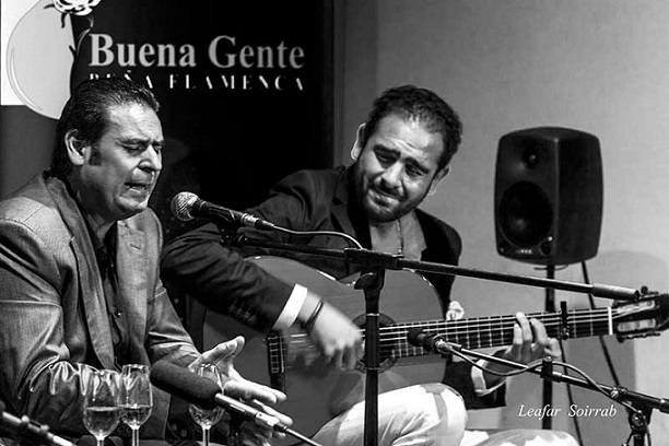 El pasado viernes 22 de junio, un año después del anunciado recital de Manuel Moneo Lara en la Peña Flamenca Buena Gente de Jerez, su hijo Barullo con la guitarra de Diego del Morao rendía honores a la memoria de su patriarca. (La foto es por gentileza de Rafael Barrios)