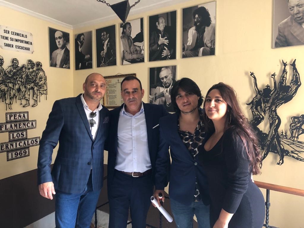 La peña flamenca, decana de la provincia de Cádiz, ha presentado sus «Encuentros Flamencos» que tendrán lugar en el próximo mes de noviembre en su sede de la calle Sancho Vizcaíno nº 25 de Jerez. Momo «Moneo», Samuel Serrano y Lela Soto serán los protagonistas. (Foto: Jesús Atienza, junto a los artistas)