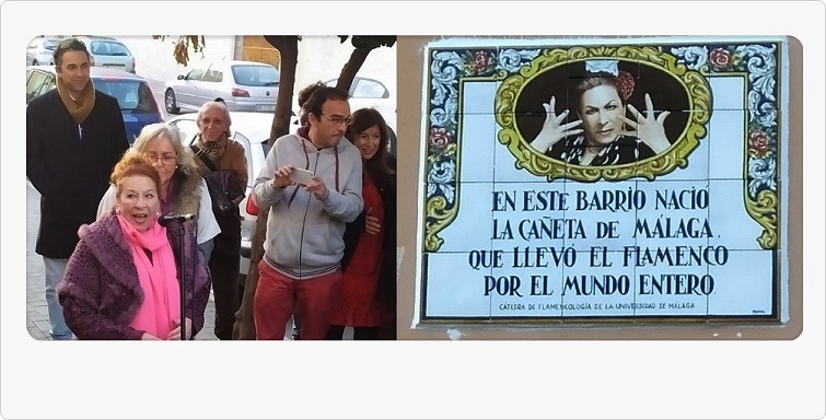 Como ya anticipamos debidamente, a propuesta de La Cátedra de Flamencología de Málaga se ha descubierto ayer una placa en homenaje a la cantaora María Teresa Sánchez Campos «La Cañeta» en su barrio natal. (Fotos enviadas por nuestro amigo Ramón Soler)