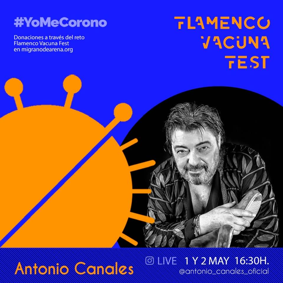 El cartel aglutina un extraordinario elenco de artistas que lidera el bailaor Antonio Canales. La idea y dirección de este evento virtual está a cargo de la productora de espectáculos escénicos Sumahprojet. El encuentro se podrá seguir a través de las cuentas de Instagram @flamencovacunafest y @antonio_canales_oficial, en las jornadas de hoy y mañana, 1 y 2 de mayo, a partir de las 16.30 horas. También se pueden hacer donaciones en la web migranodearena.org