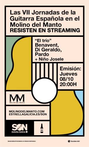 Estas jornadas, patrocinadas por Son Estrella Galicia, nacieron como una unión inédita de músicos para homenajear a Paco de Lucía y a la guitarra española y este año deciden dar un paso adelante con este concierto online en el que Niño Josele subirá al escenario para interpretar varias piezas únicas junto a “El trío”, formado por tres auténticos genios del Jazz-Flamenco fusión: Benavent, di Geraldo y Pardo.