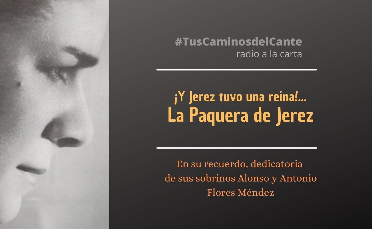 Se cumplen 17 años del adiós de Francisca Méndez Garrido, la Paquera de Jerez, para mayor honra y gloria de los cantes. Motivo por el cual, sus sobrinos Alonso y Antonio Flores Méndez, en nombre de toda su familia, han querido dedicarle este programa a la carta en su recuerdo. Nos acordamos hoy de Paquera … Continuar leyendo #TusCaminosdelCante: “Y Jerez tuvo una reina… La Paquera de Jerez”