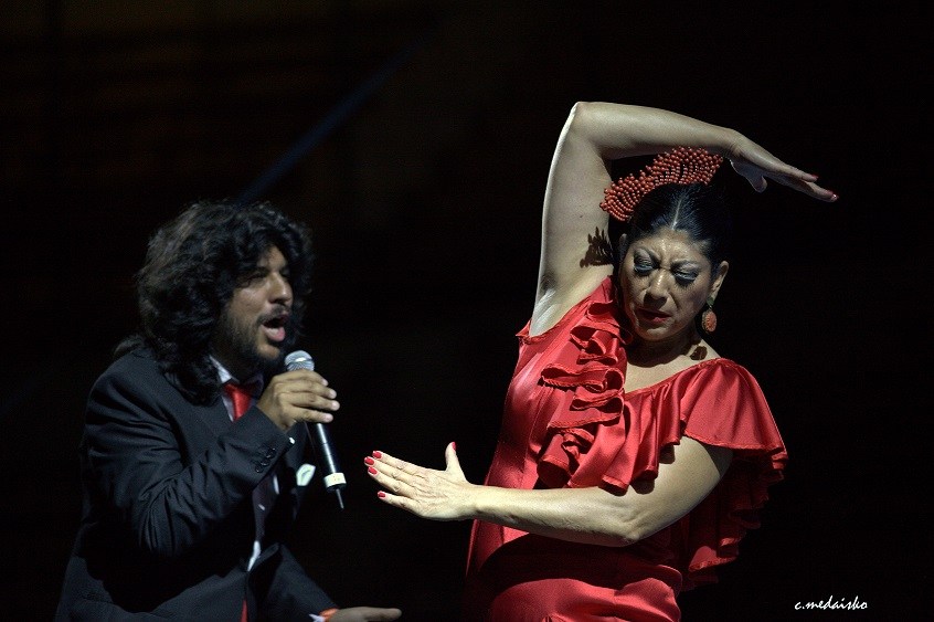 Luego, aquella gitana comenzó a bailar una soleá de esas que no se pueden borrar de la mente, y menos del corazón. Primero con elegancia y donosura al compás de la letra trianera. Más tarde, metiendo los pies con frenesí al aligerarse el ritmo. Siempre de frente, con esa mirada atávica que baila más que todo su cuerpo entero. De El Nilo a El Guadalquivir, aquella diosa egipciana – ya también andaluza – hizo temblar los cimientos del arte.