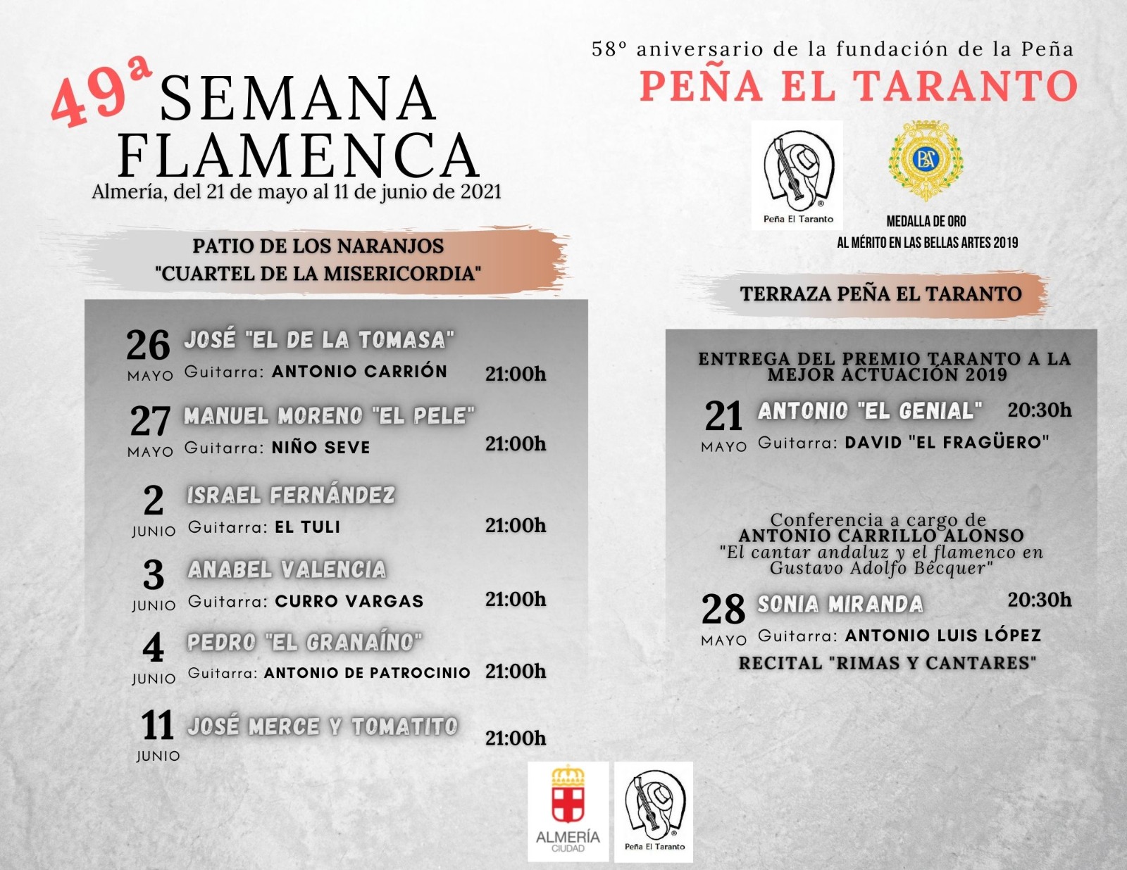 Aquí tenéis todos los detalles de la Semana Flamenca que se celebrará en Almería del 21 de mayo a 11 de junio 2021: