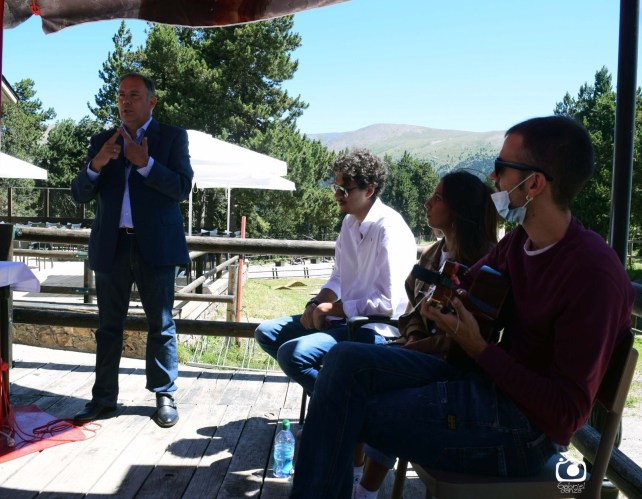 La verdad es que nunca, al menos por nuestra parte, los eternos vinos viajeros jerezanos se han catado a esta altitud. Nada menos que en una cota 2.060 metros y en pleno paraje de los Pirineos del Principado de Andorra. Una experiencia única que nos permitió disfrutar de un jubiloso encuentro artístico en las alturas. Para ello, contamos además con la excelente colaboración de la Compañía B que coordina y gestiona El Soniquete de Lola. Buena parte de ellos, pusieron voz, guitarra y compás a ‘esos vinos que se escuchan y esos cantes que se beben‘ que gracias a los duendes del sur ondearon en tan singular escenario. Colaboraron al cante el linense José Luis Hernández por fandangos, así como los jerezanos Gema Carrasco (soleá) y Pedro Montoya ‘Chanquita’ (bulerías) acompañados todos por la guitarra de Rubén Martínez.