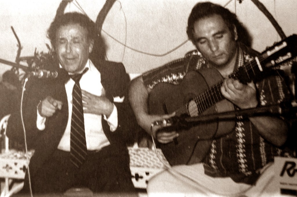 Pese a su avanzada edad, la noticia no deja de ser menos triste por el adiós de Juan Romero Pantoja ‘el Guapo de Jerez’. Esta misma tarde, su hijo lo anunciaba en las redes sociales para, luego, ser confirmado por La Cátedra de Flamencología de Jerez a la que estaba muy unido. (Juan Romero junto a Parrilla en un recital antiguo que demuestra que no sólo era saetero. Foto del Diccionario Enciclopédico del Flamenco)