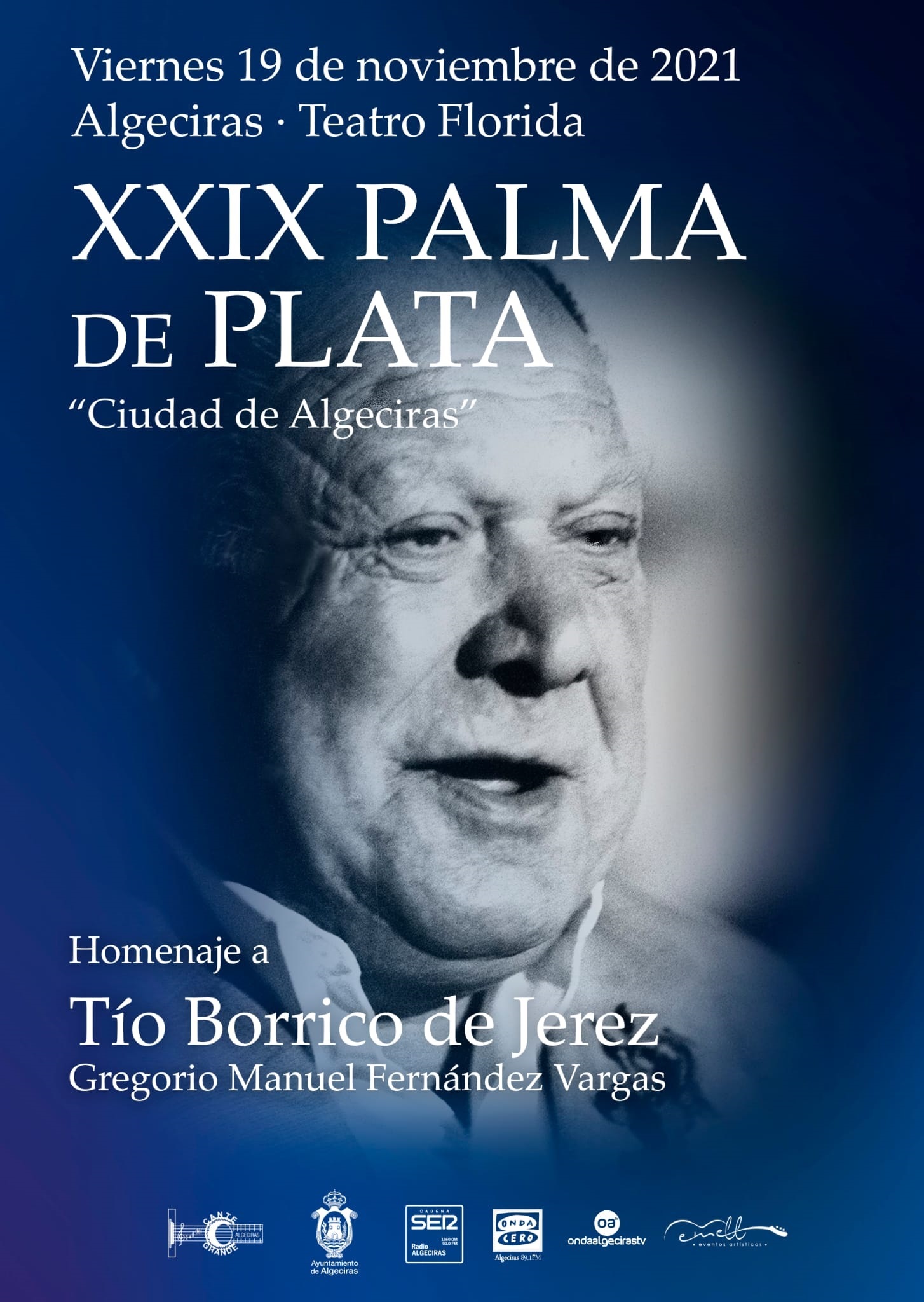 Nos acaban de comunicar desde la querida entidad Sociedad del Cante Grande de Algeciras que la 29ª Palma de Plata Ciudad de Algeciras se va a entregar, a título póstumo, al cantaor jerezano Gregorio Manuel Fernández Vargas ‘Tío Borrico de Jerez’ (Fotografía de Paco Sánchez que recoge el cartel del homenaje)