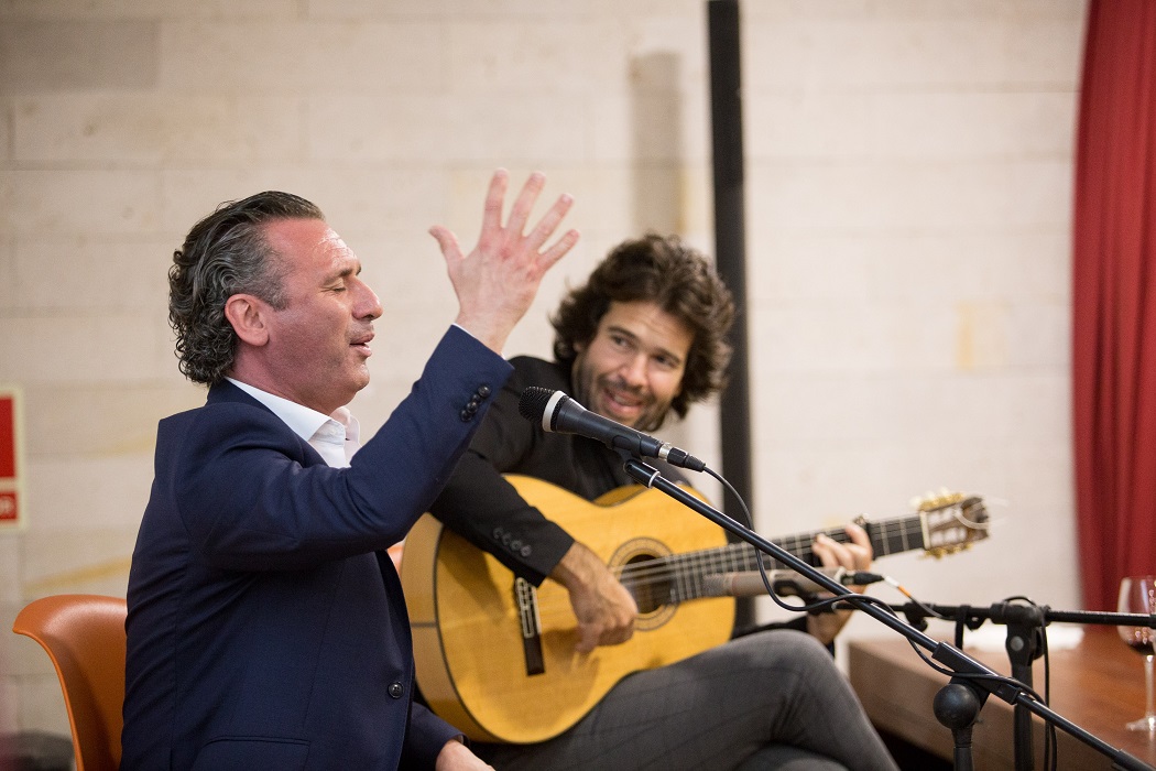 Para ello, pudimos contar con la inestimable colaboración de los artistas Caracolillo de Cádiz, al cante, y Miguel Salado de Jerez, a la guitarra, quienes se erigieron en idóneos portavoces de los vinos para hacerlos cantes con enjundia y sabor. Cómo no, con la acertada compañía del destacado sumiller y premio nacional Miguel Ángel Benítez Rodríguez, todo un enamorado del Sherry quien también empujó lo suyo para la causa jerezana en tierras vallisoletanas.