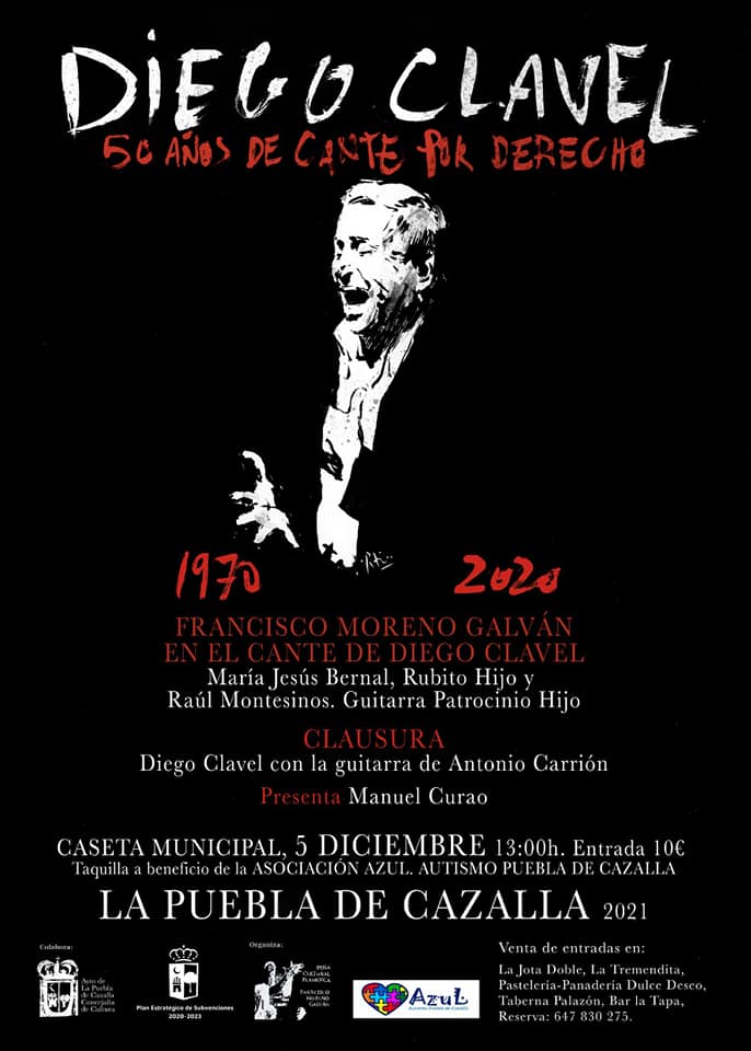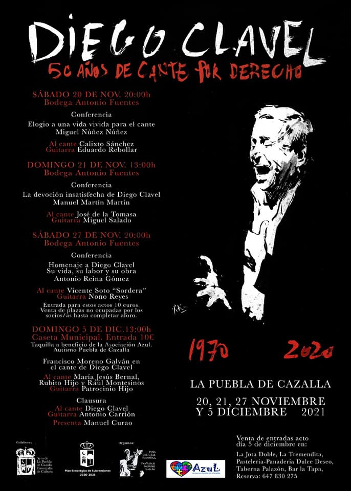Fruto de este compromiso se han preparado un conjunto de actividades y recitales para conmemorar las bodas de oro de uno de sus hijos predilectos, Diego Martagón Andrades, apodado para el arte como Diego ‘Clavel’. La cita tendrá lugar en dos fines de semana consecutivos de finales de noviembre y principios de diciembre próximos.