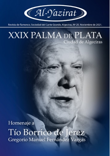 Junto a la entrega de la prestigiosa Palma de Plata de la Ciudad de Algeciras, la Sociedad del Cante Grande edita una revista en honor del artista homenajeado que cuenta con prestigiosas firmas. Fieles a su cita, podemos disponer en línea del nuevo número de la revista Al- Yacirat, dedicada en esta ocasión a Tío Gregorio ‘El Borrico de Jerez’. (Foto de Tío Borrico tomada en los Cernícalos por Pedro Carabante en los años 70 y que se incluye en la revista)
