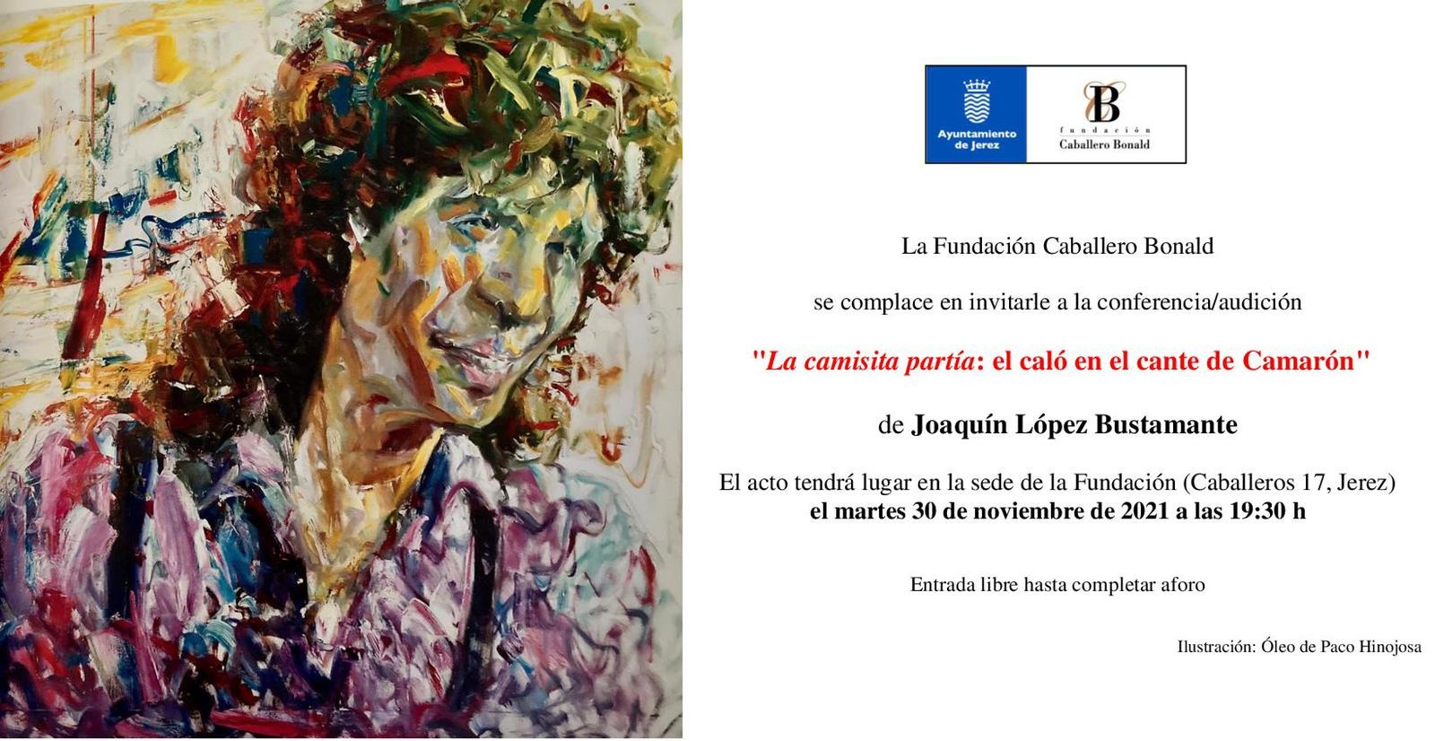 Contenido: Conferencia/audición: «La camisita partía: el caló en el cante de Camarón», a cargo de Joaquín López Bustamante.