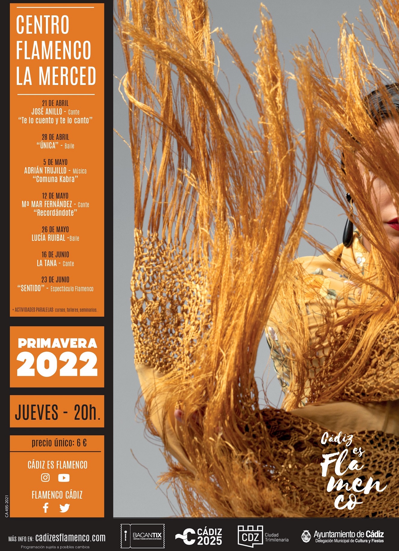 La concejala de Cultura y Fiestas, Lola Cazalilla, ha presentado este martes la Programación Abril-Junio 2022 del Centro Municipal de Arte Flamenco La Merced, que se compone de siete espectáculos flamencos que abarcan casi todas las disciplinas, dos clases de formación y un seminario sobre asesoramiento para creación empresarial dentro de este sector. (En portada, el cantaor José Anillo quien será el encargado de abrir el programa. La foto es de su web oficial)