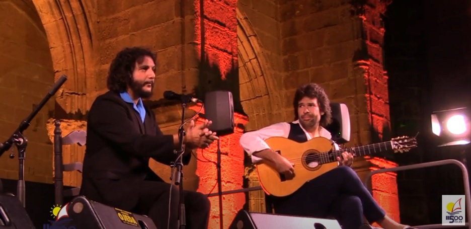 Gracias a los compañeros de 11500tv podemos compartir con toda la familia de caminantes unos momentos de la inauguración oficial de las segundas Jornadas de Cante de Cádiz y Los Puertos. El cantaor chiclanero Antonio Reyes, escoltado por la guitarra de Miguel Salado, fue el encargado de abrir plaza. (Frame del vídeo de los compañeros de 11500tv)