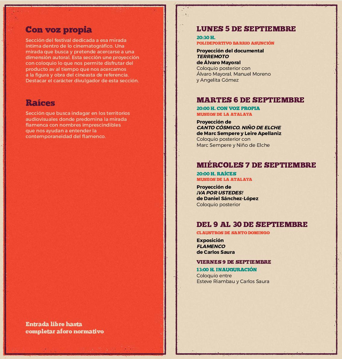 Tras la proyección tendrá lugar un coloquio entre el director de la cinta, Álvaro Mayoral quien estará acompañado por Angelita Gómez y Manuel Moreno Román, dos personas muy allegadas al genial cantaor de la barriada de la Asunción de Jerez. Si bien como sabemos, Terremoto padre nació en la calle Nueva del barrio de Santiago.