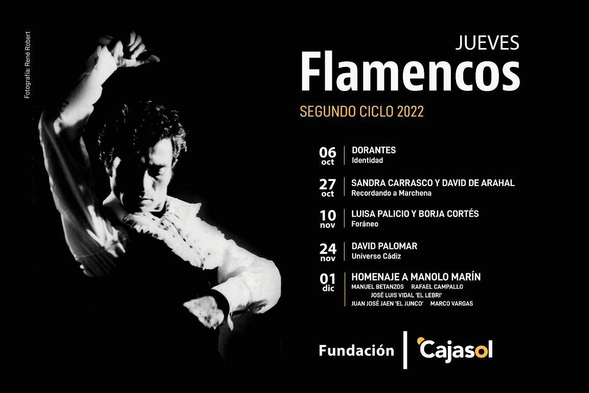 El ciclo continúa con el cante y la guitarra de Sandra Carrasco y David de Arahal (27 de octubre), el baile de Luisa Palicio y Borja Cortés (10 de noviembre), el cante de David Palomar (24 de noviembre), y, por último, un homenaje a Manolo Marín (1 de diciembre), a cargo de artistas como Rafael Campallo, Manuel Betanzos, José Luis Vidal “El Lebri”, Juan José Jaén “El Junco” y Marco Vargas.