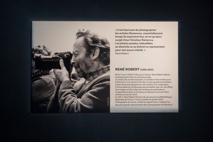 En el tenor literal del artículo referenciado se dice que ‘René Robert fue apodado «el hombre del sombrero». Durante más de 30 años, con su sombrero, este fotógrafo, nacido en Friburgo, Suiza, fue un habitual en el Festival Flamenco de Nimes. Con la cámara colgada sobre su hombro, cruzó el backstage y las habitaciones para capturar los momentos mágicos del arte inmemorial del flamenco. Sus fotos, siempre en blanco y negro, han plasmado la malicia de Rocío Molina, la excentricidad de Israel Galván pero también artistas icónicos como Paco de Lucía o Camarón de la Isla. Es bastante simple, René Robert dedicó su vida al flamenco’.