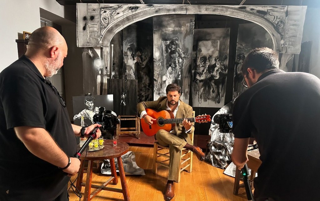 En la víspera del Día de la Merced, morena como ninguna, la patrona de Jerez – como así reza la letra cantada – el guitarrista Manuel Valencia Medrano nos regaló un nuevo videoclip. Además, con el aderezo del pintaor Patricio Hidalgo quien ha sabido interpretar con sus pinceles los sonidos de esta honda composición. (En la foto de su FB, Manuel Valencia durante el rodaje de la obra)