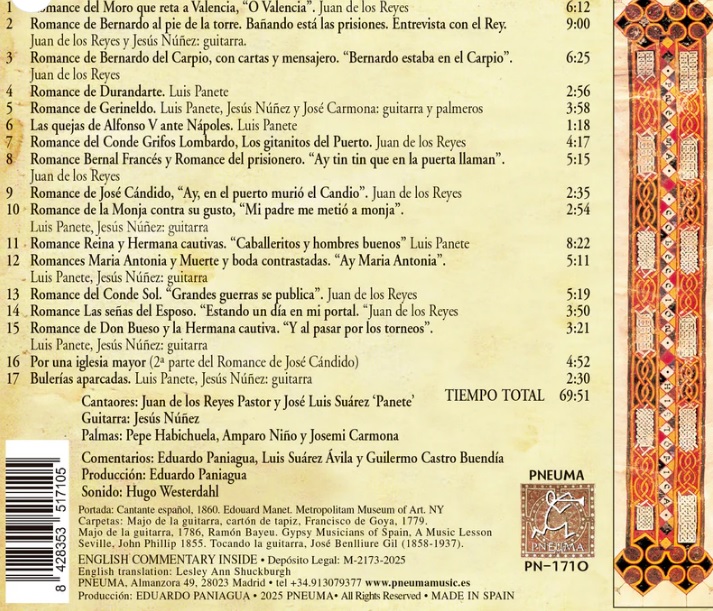 Entiendo que no es muy correcto su título, pues en atención a la naturaleza de piezas que componen el disco, estaríamos ante un catálogo de romances castellanos. Cuestión aparte es que milagrosamente permanecieran en la memoria de algunos gitanos de la Baja Andalucía, cuyo mérito es incuestionable, pero en tal caso hablamos más de conservadores que de autores propiamente dichos. Si bien es cierto que en el seno de estas familias sufrieron una suerte de alquimia musical.