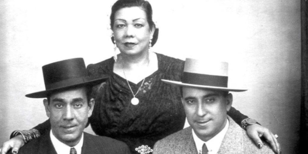 Por la impagable labor del compañero Manuel Bohórquez sabemos que es muy posible el parentesco de nuestra cantaora, más o menos cercano, con la familia de Los Pavón sevillana. De cualquier forma, su cante era todo un referente para Arturo, La Niña y Tomás porque la consideraban ‘una diosa’, continúa. (En portada, La Niña de los Peines junto a su hermano Tomás Pavón y su esposo Pepe Pinto)