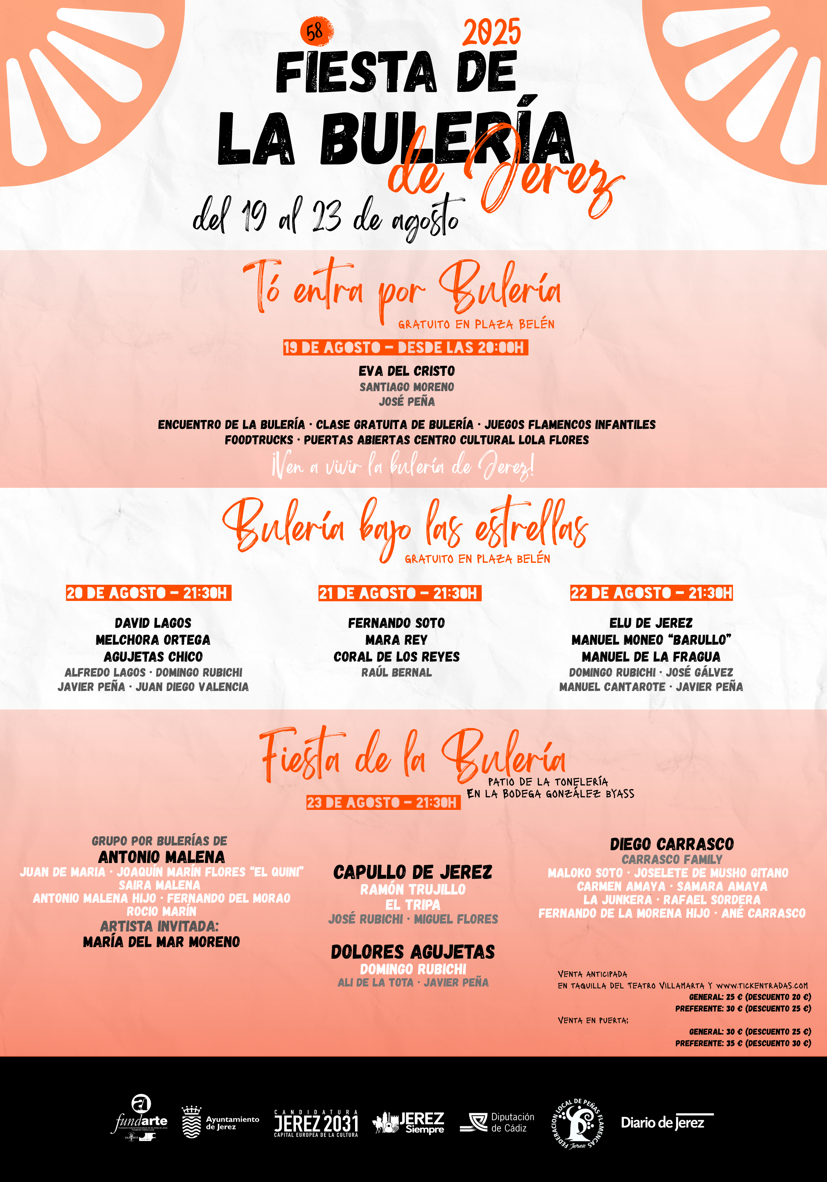 La 58 edición de la tradicional cita con el flamenco en el periodo estival jerezano apuesta por lo popular y participativo con algunos espectáculos gratuitos en la Plaza Belén. Además, el modelo de los Viernes Flamenco y Fiesta de la Bulería son continuistas respecto al año anterior, al menos por los lugares de celebración. (En portada, Capullo de Jerez quien vuelve a la fiesta grande de su tierra tras varios años de ausencia. Fotografía del perfil oficial del artista)
