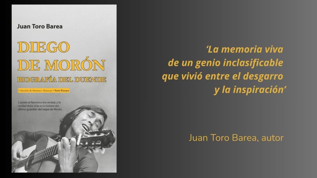 Diego de Morón. Biografía del Duende es el título del nuevo libro que acaba de publicar la editorial Almuzara. Se trata de una obra del crítico de flamenco, Juan Toro Barea, quien, desde una relación personal y profesional con el guitarrista, recoge, según se manifiesta en este volumen, “la memoria viva de un genio inclasificable que vivió entre el desgarro y la inspiración, entre la marginalidad y la gloria, entre la leyenda y la carne”.